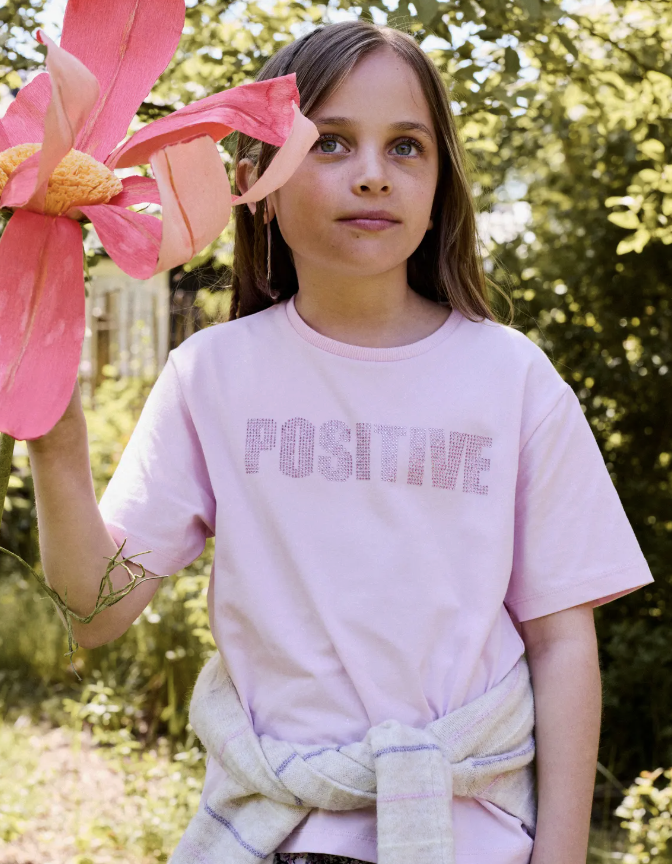 Wowww, wat een leuk shirt! De 'Positive' opdruk is gemaakt van kleine bling-bling-steentjes! We LOVE it! Lees meer